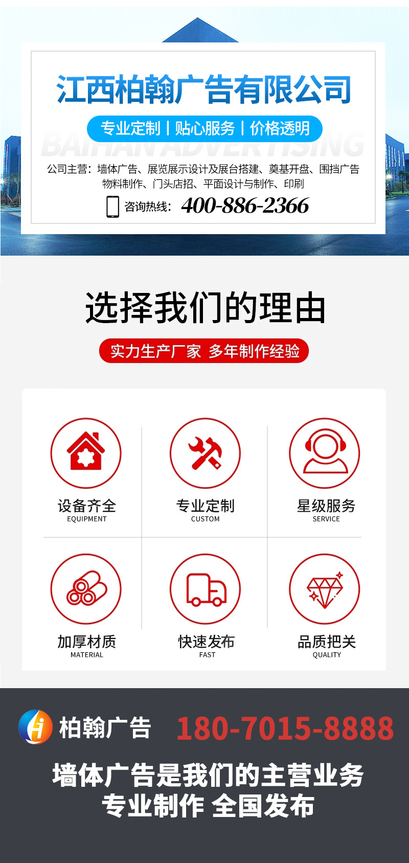 多年專注廣告行業(yè),專業(yè)專注,全國(guó)戶外墻體廣告策劃終端發(fā)布商